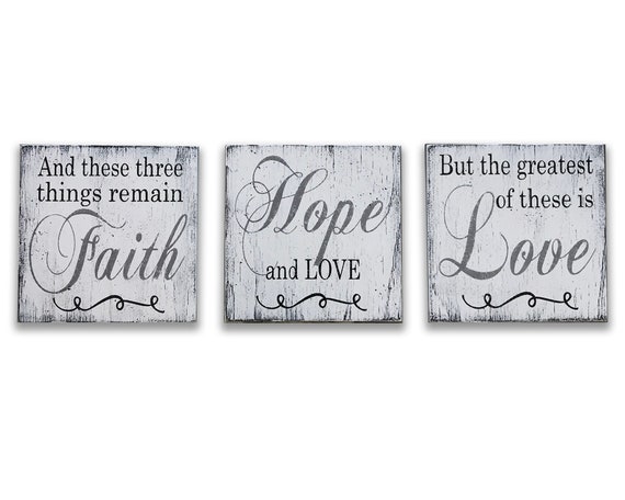 Wood sign christian wall art christian wall hanging christian wall decor faith hope love decor shabby chic decor distressed wood sign. Rustic wood signs from barnboard pallets and planks hot home decor trend. This high quality christian wall art is printed on stretched canvas and manually framed by a craftsman.
