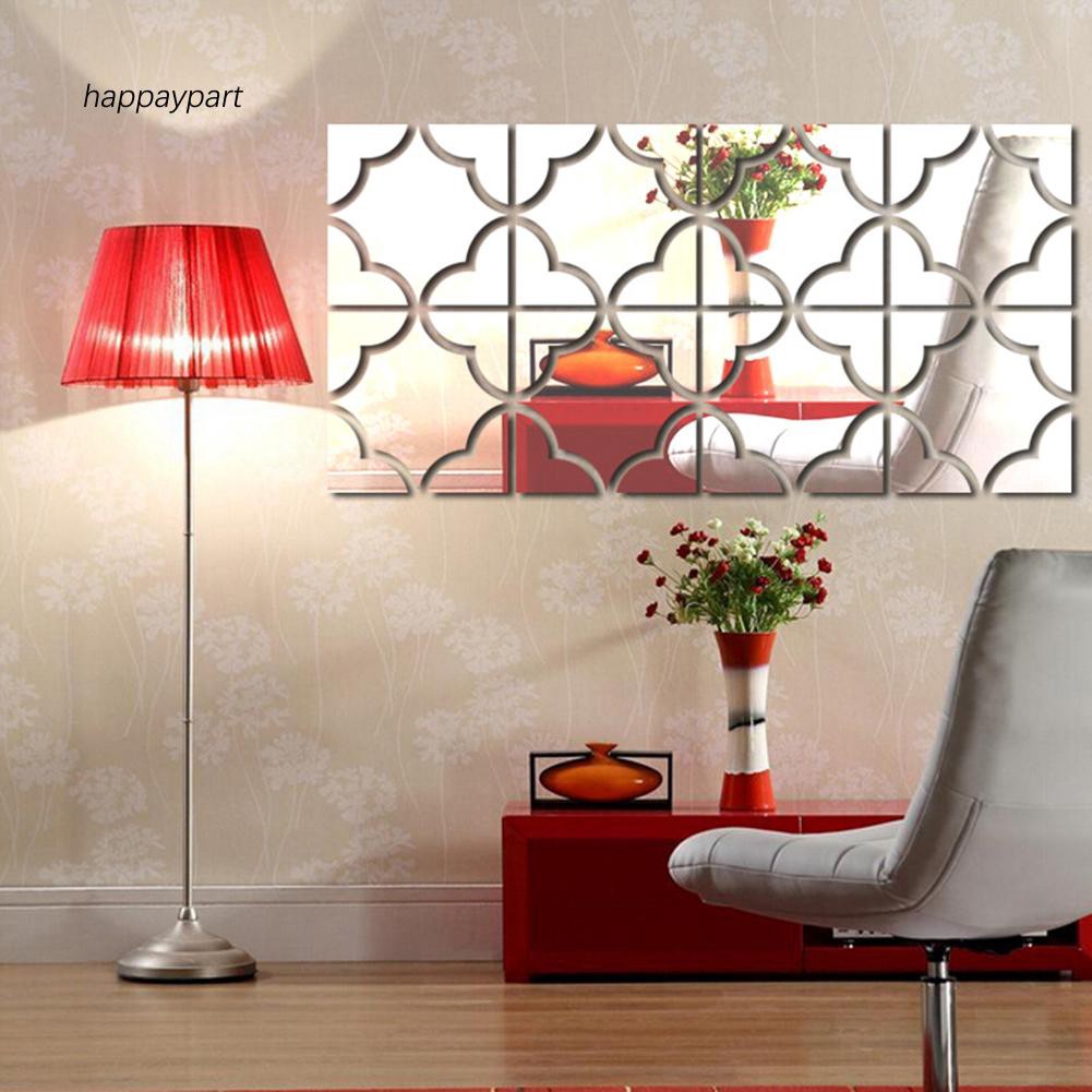Ha 4 Pcs Modern Square Shape Mirror Diy Geometric Wall Stickers