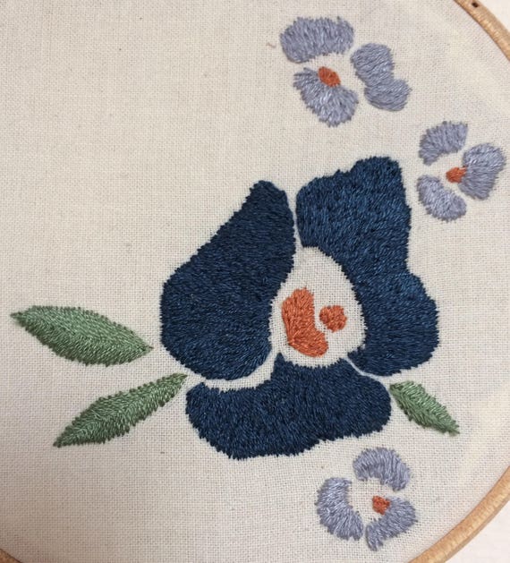 Blue Flower Hand Embroidery Hoop Wall Art Home Decor Etsy