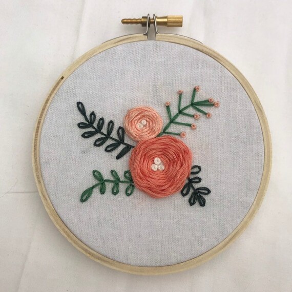 Embroidery Hoop Wall Art Embroidered Pink Roses Peony Wall