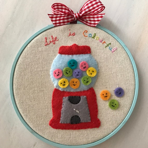 Gumball Machine Embroidery Hoop Wall Art Felt Wall Art Etsy