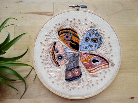 Moth Wings Crown Hand Stitched Hoop Art Hand Embroidered Wall Etsy