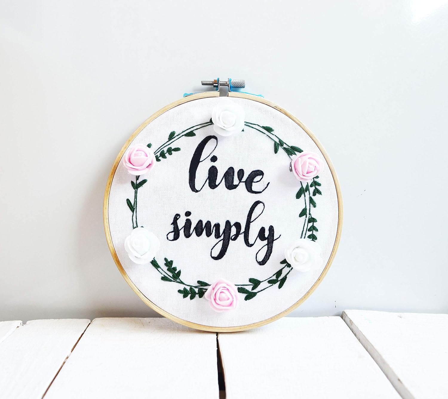Amazon Com White Flowers Wreath Embroidery Hoop Art Floral Hand