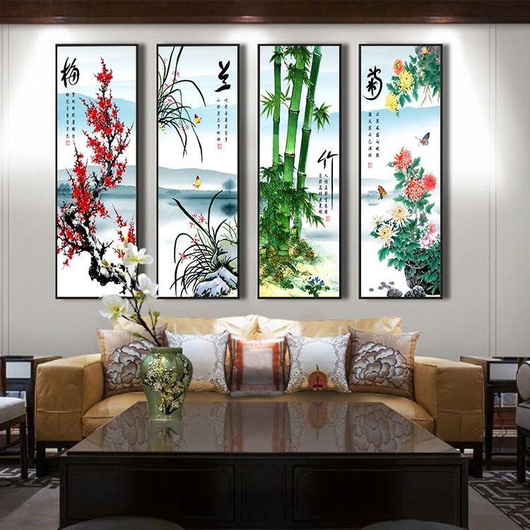 Canvas Wall Art Decor Chinese Meilan Bamboo Chrysanthemum Painting
